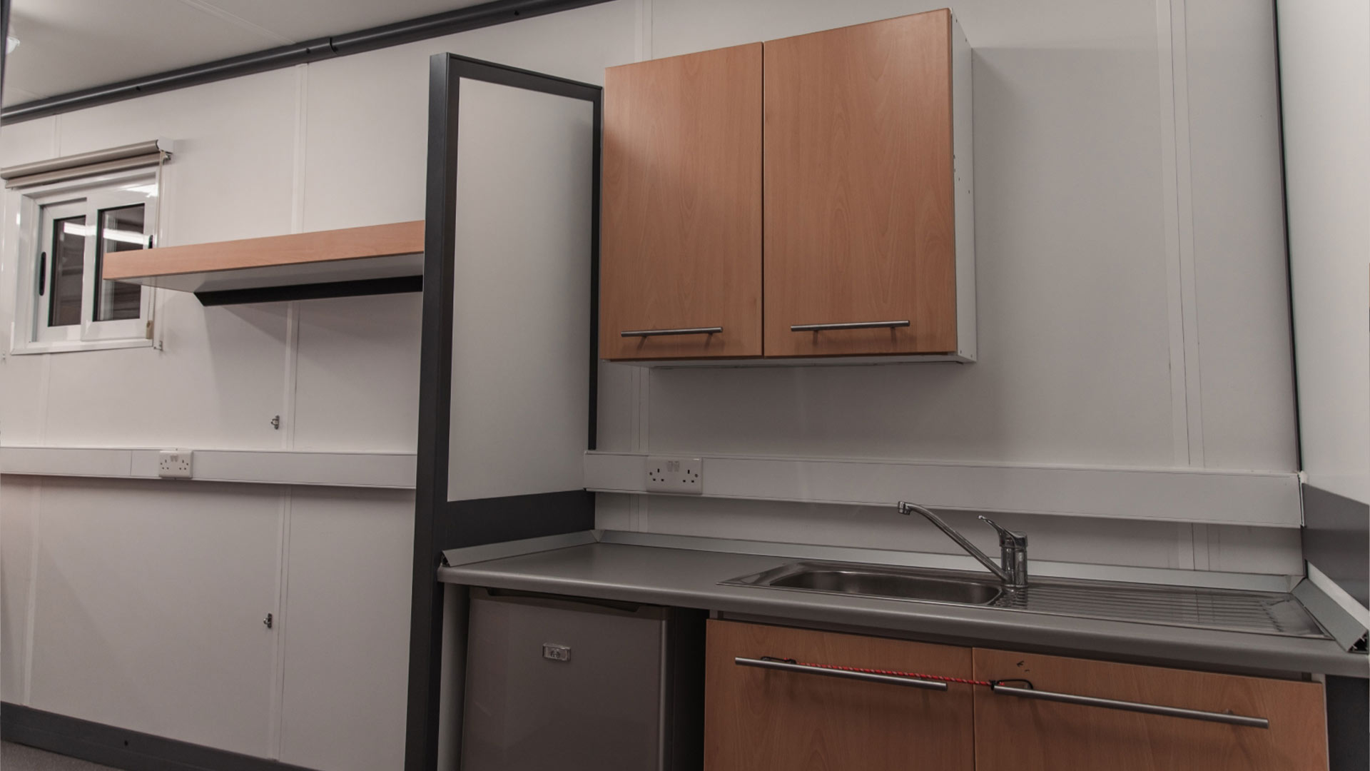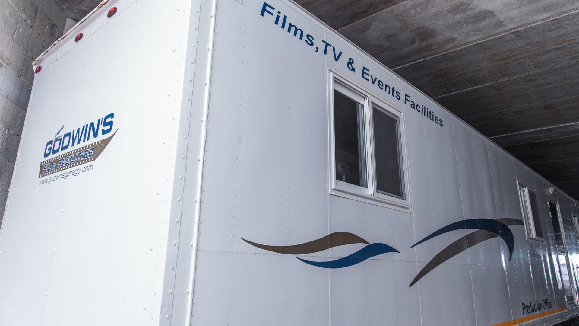 Its clean, modern layout ensures that crews can work efficiently, whether handling schedules, communications, data wrangling, or daily production tasks. The unit also features a separate desk area for private meetings, a kitchenette with sink and fridge, ample storage, and large windows for natural light.