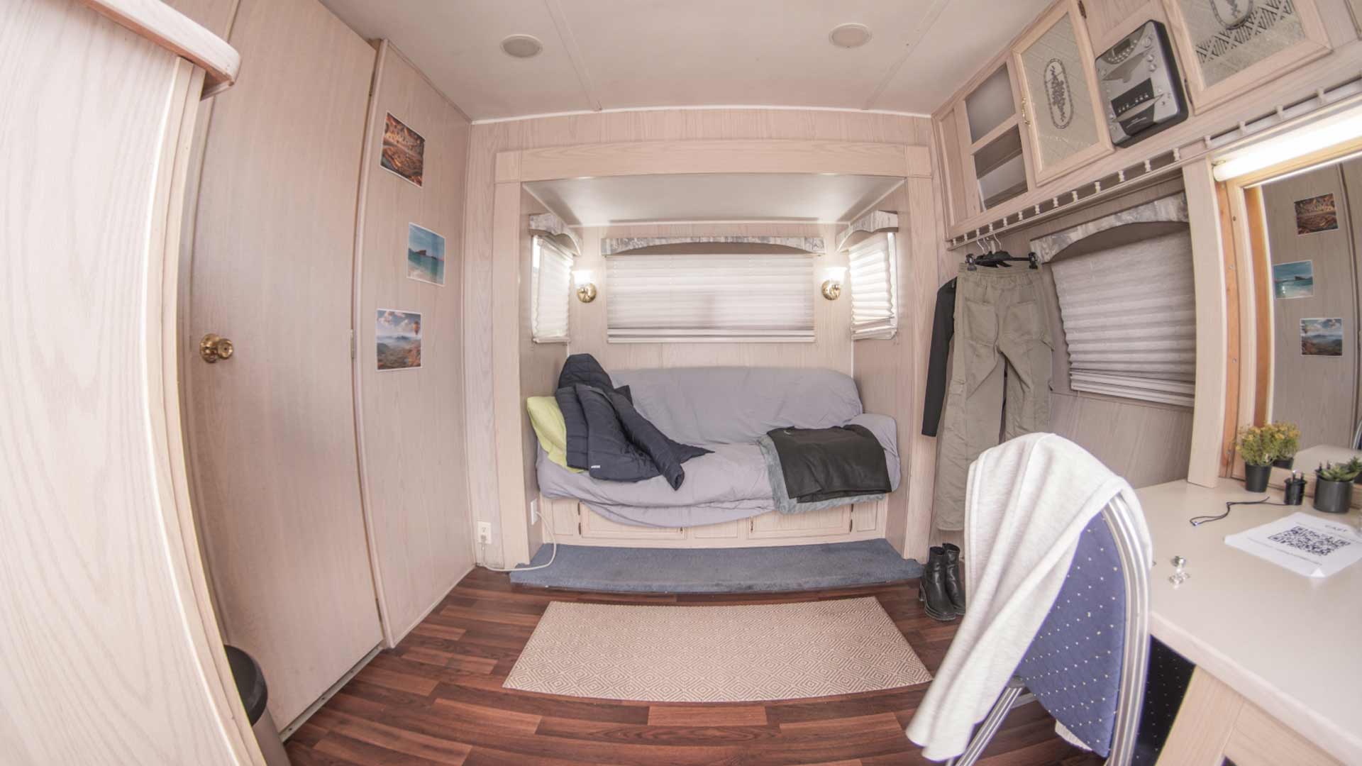 The Artist 3-Way Trailer with Showers offers a comfortable and private space for cast members throughout filming. Designed to deliver maximum practicality on set, the trailer includes individual dressing areas, wardrobe hanging space, comfortable seating, and ample storage for personal items or costumes.