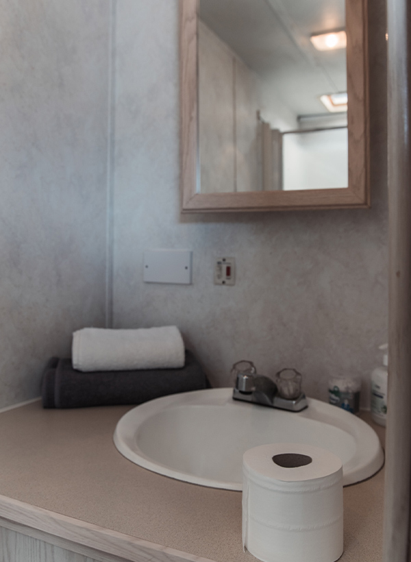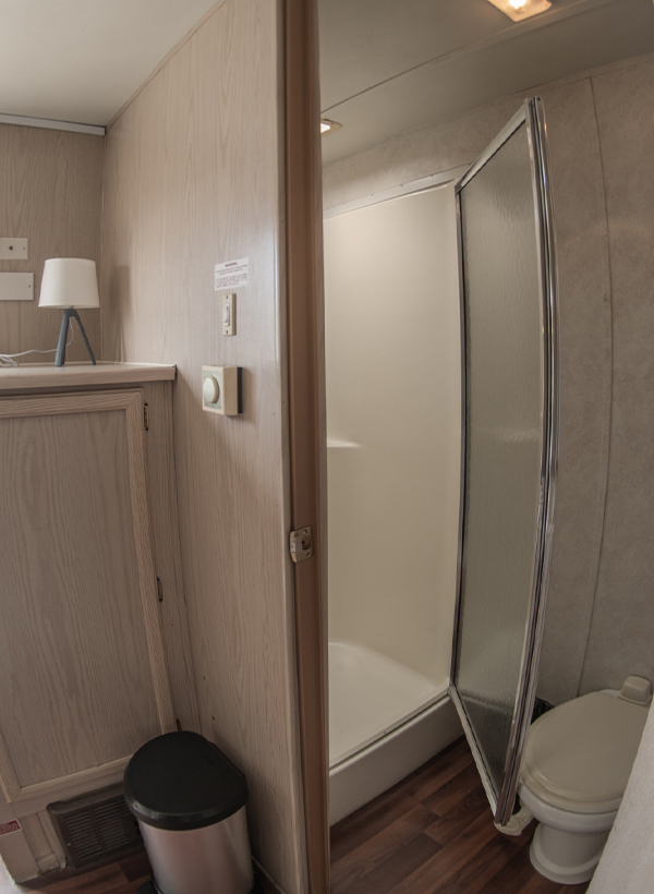 The fully equipped bathroom features a shower, sink, toilet, and essential facilities to ensure cast members can prepare, freshen up, or reset between scenes. Air-conditioned interiors, natural lighting, and a clean, modern layout create a calm and efficient working environment.